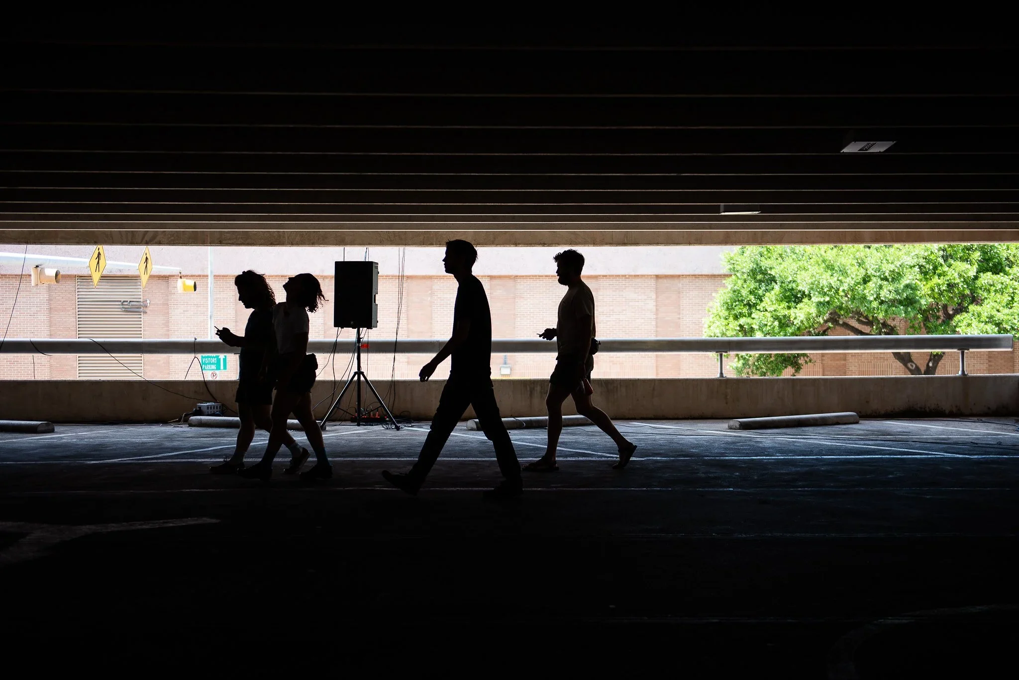 It features a 3-dimensional sonic space that is used to present a number of commissioned spatial sound compositions on a massive, 32-channel platform inside of a unique, five-story parking garage. Speakers are arranged throughout the space, inspired by sonic structures present within rainforests.